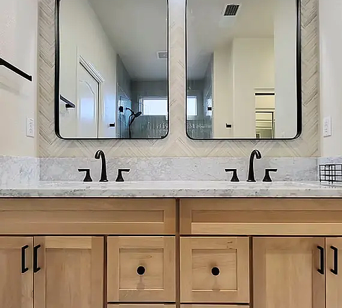 Cluttered counters and overflowing drawers signal a storage setup that doesn’t match your routine. We design vanities and cabinets that give every item a place, so mornings run smoother and the bathroom stays organized. Whether you need double sinks for a shared space or vertical cabinets for extra towels, we customize storage to your habits and the room’s footprint.